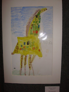 Seems like I am always bragging about my son, but I do have a wonderful daughter too! It's only fair that I get to brag about her too! Anyone who is friends with me on Facebook has already seen this, sorry to repeat myself! Last night we attended an art exhibit that included M's artwork. I tried looking around online to get numbers, because this exhibit included artwork from the entire Public School district. The numbers I found were a couple years old but there were roughly 30,000 kids in the public schools that year. I don't know how many schools there are but M's school has about 400 students. Each art teacher had to choose 4 students from their school, and M was chosen. Her artwork is an "African Giraffe." I think she did fantastic! (Remember, she is only in kindergarten!)